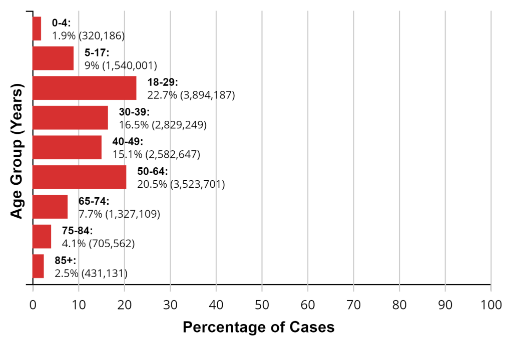 The CDC COVID Data Tracker Cases by Age Group. Found here.